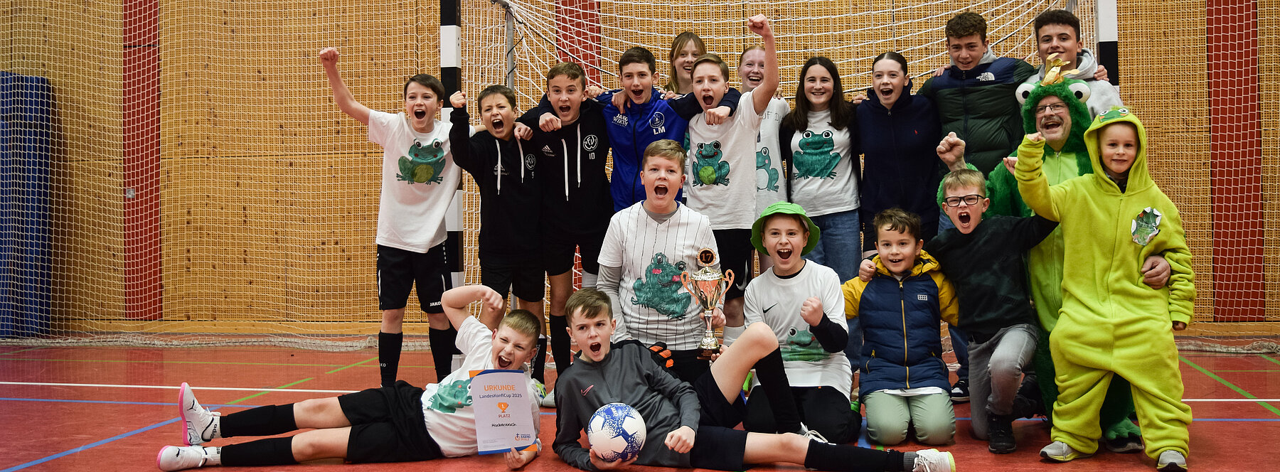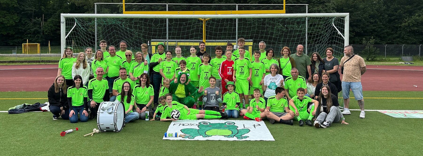 F.C.K. – oder auch „Fußball cool in Köln“ erlebten unsere Präparand*innen, die alle für ein evtl. Konfi-Bundesturnier 2026 im nächsten Jahr wieder spielberechtigt wären (nur unser Spieler-As Lilly Gros ist mittlerweile frischgebackene Konfirmierte). Zwei Turniersiege auf Dekanats- und Pfalzebene berechtigten zur Teilnahme am Fußballturnier der besten Konfiteams Deutschlands. Und es war soooo toll! Pate dafür standen neben den Spielern und Spielerinnen selbst auch die Eltern, die das „Drumrum dieser schönsten „Nebensache der Welt“ managten. Viele Familien haben den weiten Weg ins Kölner Rhein Energie Stadion auf sich genommen und bei den Spielen, die im Rahmen eines „Come together-Festivals“ zelebriert wurden, für kräftige Unterstützung gesorgt – lukullisch mit Essen und Getränken und darüber hinaus sehr wortgewaltig und mitreißend-energiegeladen. Auch von zuhause aus kam viel Rückenwind für unsere Mannschaft: von mitfiebernden Mitpräparand*innen und vielen Freunden und Gönnern; im Vorfeld drückte sich die Begeisterung und Sympathie auch in einer sehr üppigen Spendenbereitschaft aus, angefangen von der stolzen Ortsgemeinde Mackenbachs über Vereins-„Verbündete“ bis nach Reichenbach zur Apotheke und zum VfB, der seine schönen Rasenplätze zum vorbereitenden Training zur Verfügung stellte.: Es gab und gibt eine große Solidargemeinschaft, die auch aus finanzieller Sicht eine solch umfangreiche Unternehmung mit Übernachtungs-, Fahrt- und anderen Kosten erst möglich machte. Wenn Frösche – und das sind wir Konfifußballer aus Mackenbach, Schwedelbach, Reichenbach-Steegen mit Kollweiler und Erzenhausen nun mal – über den Teichrand bis nach Köln hinausschauen, dann freuen sie sich auch über Kröten, die dafür locker gemacht wurden. Auch die starken Frosch-Trikots wurden dank der Firma „Bodenbeläge Jung“ großzügig gesponsert.